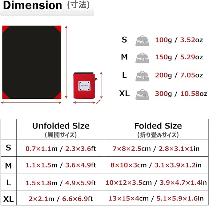 • Portable & Lightweight: This pocket blanket can be folded into the included bag and easily carried. The ultralight pocket picnic blanket weighs 5.29oz (M), 7.05oz (L), 10.58oz (XL). Super lightweight design, it will never be a burden when go out