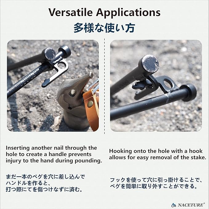 • 🔨Easy-to-Hammer Surface – Along with being stronger and more resilient these heavy duty tent stakes for high wind have an enlarged hammering surface to ensure cleaner, more efficient strikes when driving them in to help prevent injuries and improve ground security.