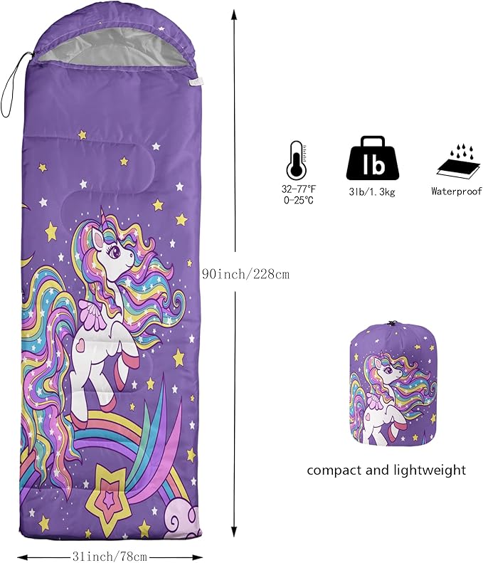 • 【Fits For 3 Seasons】: Size - 31 by 90 inches (W x D). Our sleeping bag can be used in 3 seasons with a design temperature of 32℉-77℉(0℃-31℃). These bags also have a weather resistant waterproof design to keep you warm and prevent you from any dampness.