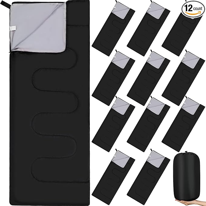 Macarrie 12 Pack Camping Sleeping Bags for Adults Bulk Cold Weather Kids Sleeping Bag Homeless Lightweight Waterproof Compression Sack for Backpacking Traveling Hiking Outdoor