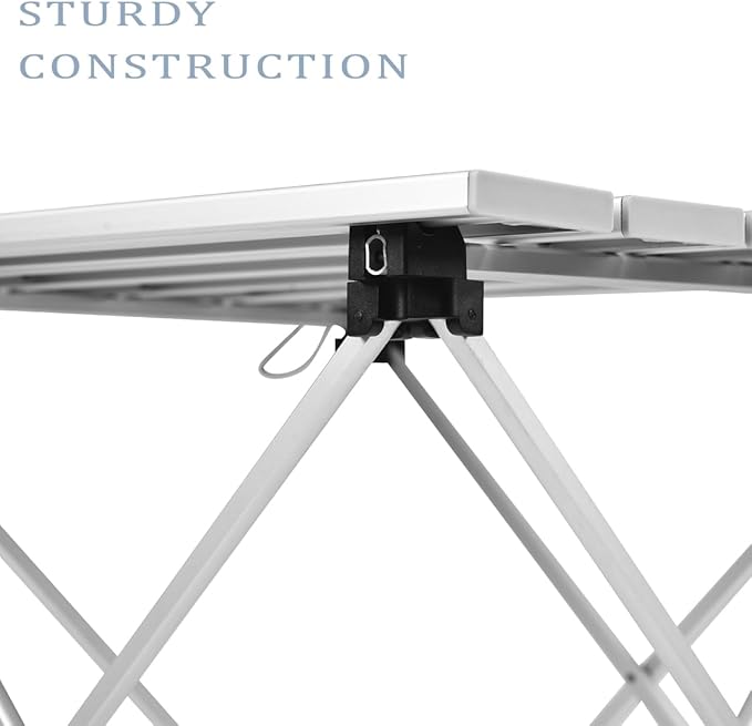 • Sturdy Construction ---- Our folding camping table is made of heavy-duty aluminum, the legs will not fold, bend or fall off with the stable foot cap, allowing it to be used on different terrains without the risk of tipping over. The triangular frame and sturdy joints make the foldable camping table can support 55 pounds of weight. So you can use this table for picnics or cooking with complete confidence