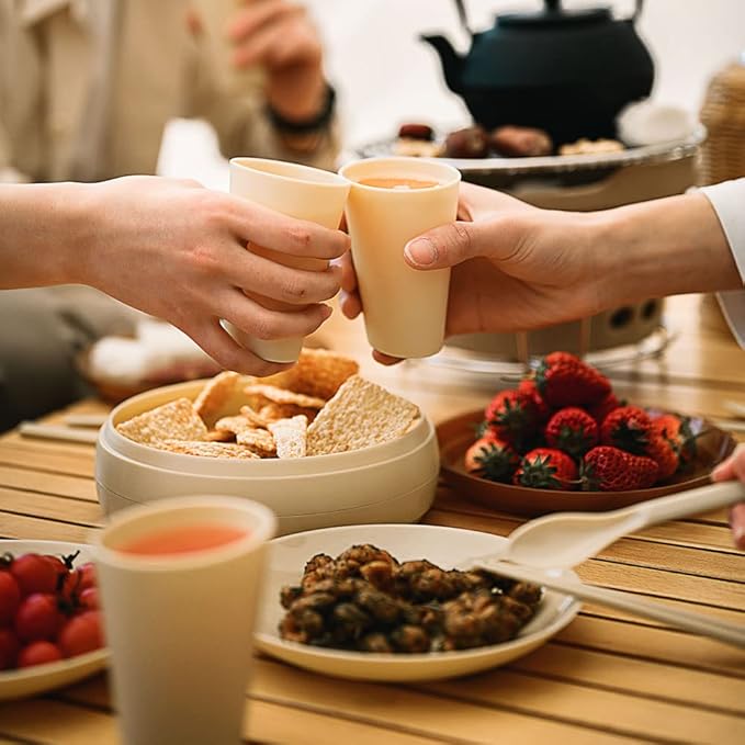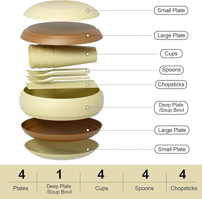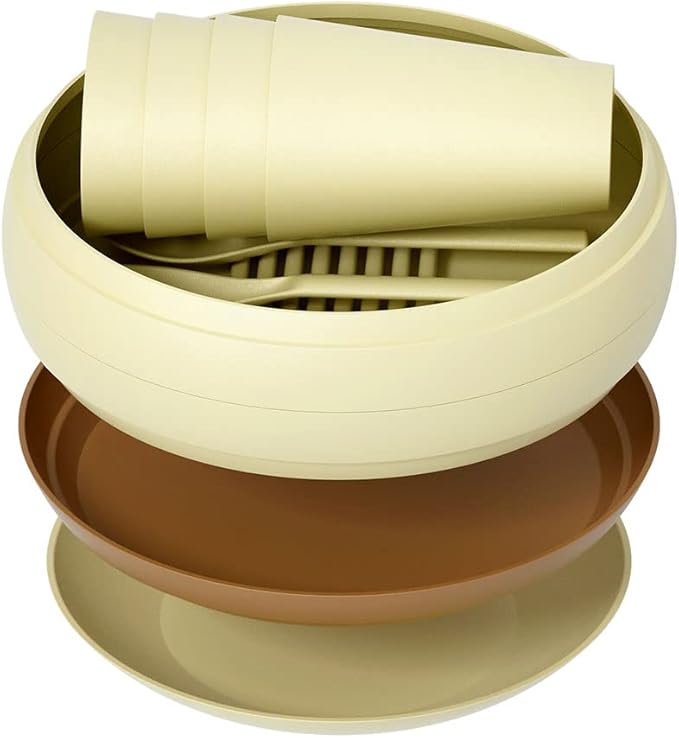 • 【Portable, Lightweight & Durable】Made of BPA-free and food-safe PP plastic, the plastic dinnerware set is unbreakable compared to conventional dinnerware. The camping dishes set can be stacked into one and has a handle for easy carrying.