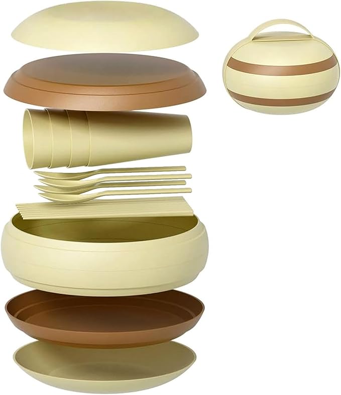 • 【Camp & Picnic Essentials】This camping dish set is full of all the equipment you will need for your picnic or camping trip. Simply use, clesn and store the camping plates and utensils set. Including all of the picnic essentials , with addition of a condiment shaker, you are all set!