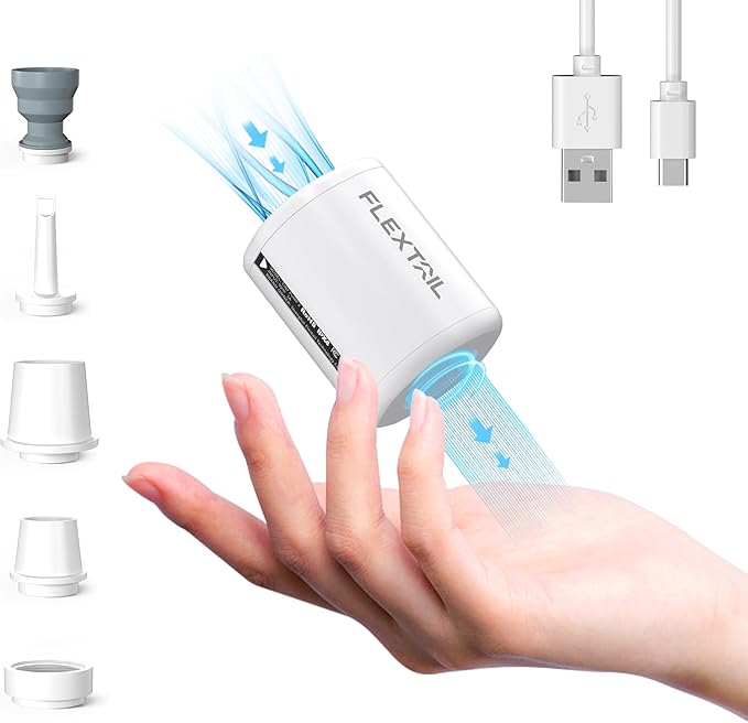 FLEXTAILGEAR Portable Air Pump - Tiny Pump 2, Electric Air Pump for Inflatables 2.8oz Battery Inflator Rechargeable Air Mattress Pump for Sleeping Pads, Pool Floats, Swimming Rings White