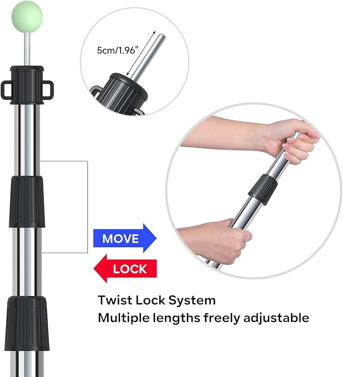 • 【Free Adjustment Design】3 sections adjustable tent poles can be extended from 34.6 inches/3 Feet to 86.6 inches/7.2 Feet in length. It is easily adjust to any length between compact size and extendable size. Rotate to the left to lock the length, rotate to the right to unlock.