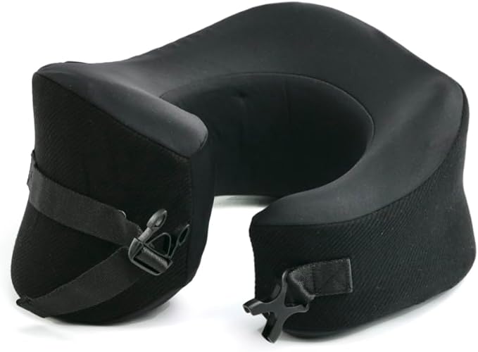 C CUSHION LAB Extra Support Travel Pillow, Award-Winning Patented Ergonomic Design for Chin & Neck Support Memory Foam Neck Pillow, Compact Airplane Pillow for Traveling, Flight, Car (Black, Large)