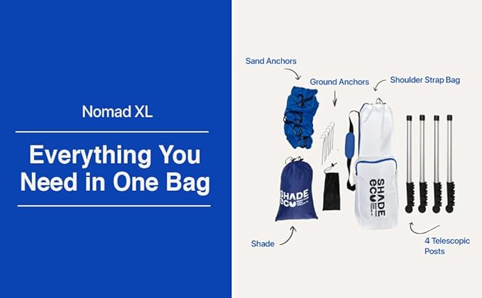 • Portable & Travel-Friendly – Despite its size, this nomad beach shade packs into the included carry bag for easy transport, making it perfect for camping, road trips, picnics, and beach vacations.