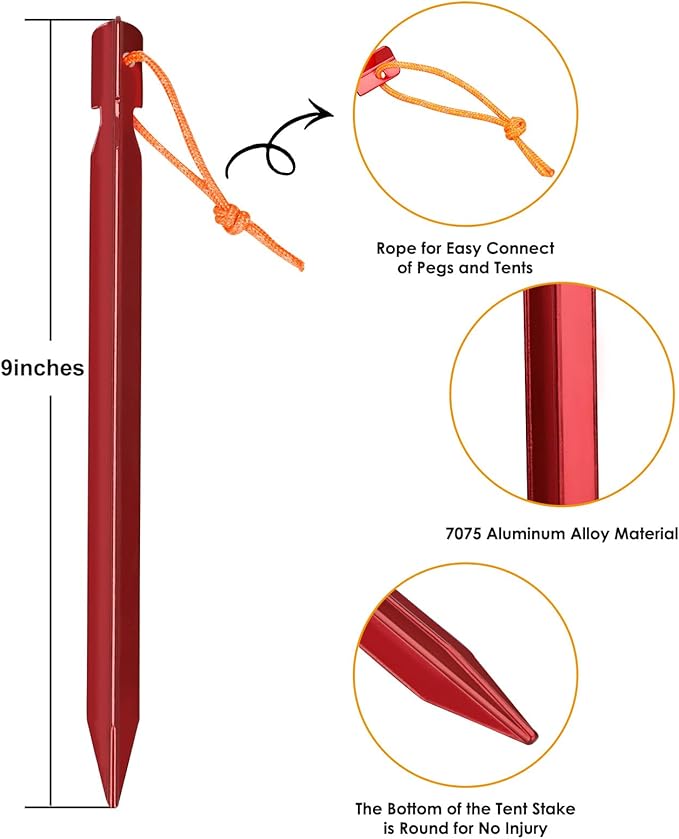 • 1. [ DURABLE & LEIGHTWEIGHT ] GRASSMAN Tent Stakes made of high-strength 7075 aluminum alloy material without unnecessary weight to your pack. Metal tent stakes can stably fix the tent on the ground, won't bend or fail on you.