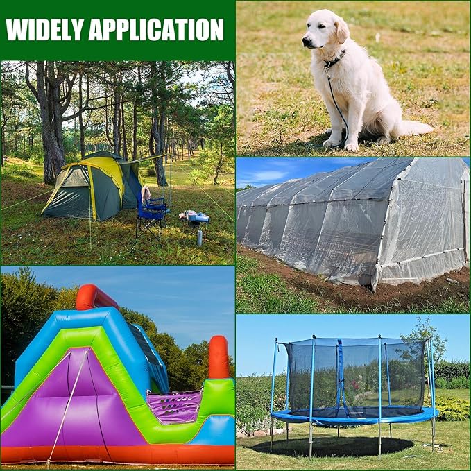 • Wide Application: trampoline tie down anchor kits are suitable for a wide variety of applications such as trampolines, temporary shelters, swing sets, camping tents, slides, canopies, trees, fences, car ports, sheds, fence posts, pet houses and more