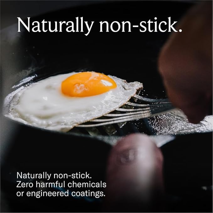 • NATURALLY NONSTICK & NONTOXIC: Field Skillets come pre-seasoned with organic grapeseed oil. As you cook your pan will develop a more seasoning, becoming more nonstick over time without any toxic chemicals. All our products are entirely PFOA & PTFE free.