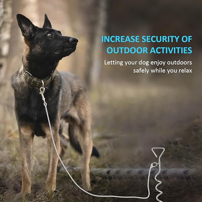 • [EASY TO USE]: Easy to screw the dog stake into the ground like a bottle opener, and then connect the collar to the tie-out cable, the clip can ensure an easy on/off the connection, saving time and effort.