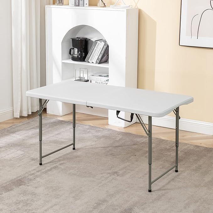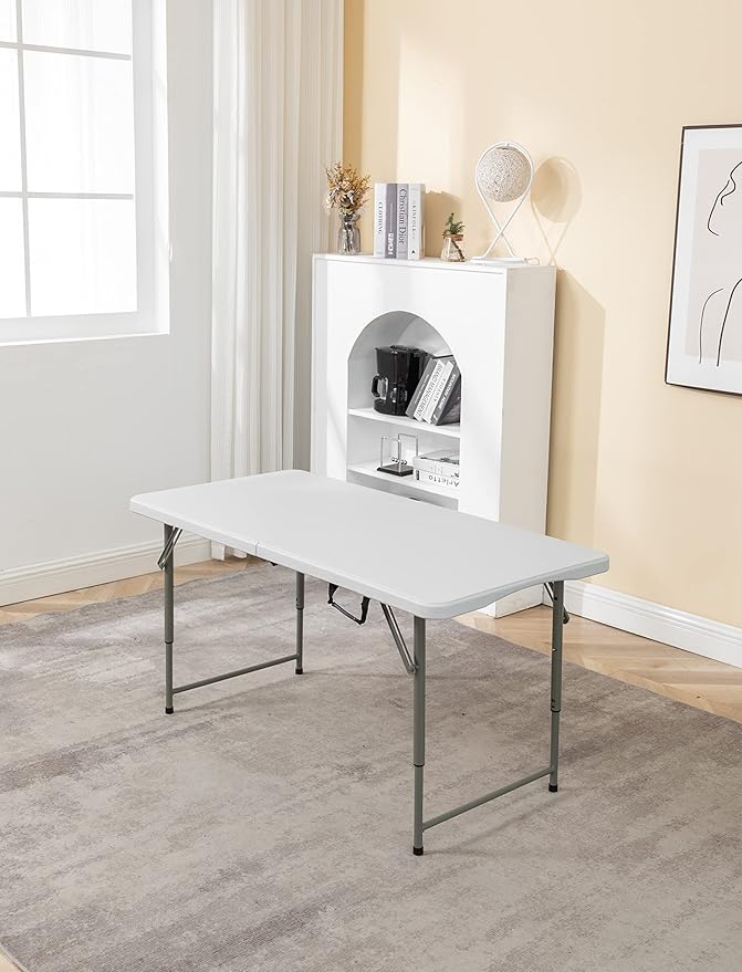 • PORTABLE LIGHTWEIGHT & COMMERCIAL GRADE: Indoor Outdoor folding table with 47Wx23.6D inches top perfect for any Hotel, party or socialization, whether hosting a backyard barbecue, or simply need extra seating at next gathering. Stable enough to put heavy stuff sitting on top. Tabletop made from 35mm thick durable plastic, adjustable Height (20/24/29") seat up to 4 adults. bifold top sturdy cross legs for added stability, the smooth top is easy to use, clean & maintain, water and stain resistant