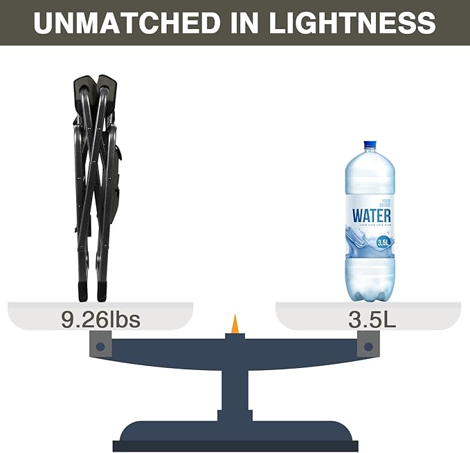 • LIGHTWEIGHT AND PORTABLE: Weighing only 9.26 pounds, this chair’s lightweight aluminum frame makes it easy to carry. Whether for camping, sports events, or backyard gatherings, this chair is the perfect travel companion
