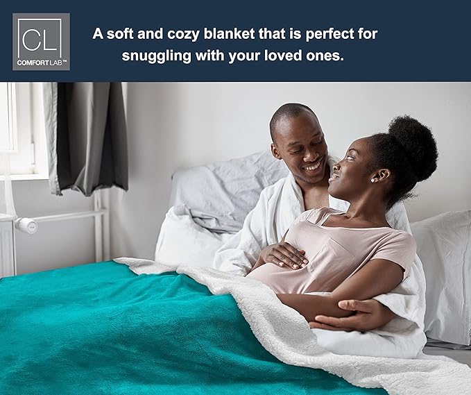 Comfort Lab Reversible Flannel Sherpa Throw Blanket - Elegant Fluffy Throw Blankets for Couch and Home Decor - Anti Pilling Non Shedding Cozy & Warm Fleece Throws - Oversize Throw (60" x 70") - Teal