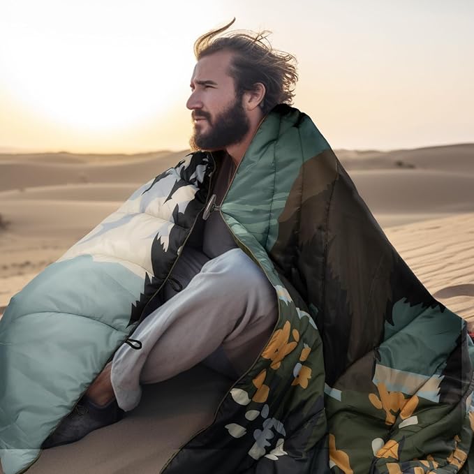 Camping Blanket Puffy - Outdoor Stadium Blanket Wearable, Lightweight, Packable, Machine Washable Camping Quilt for Traveling, Picnic, Beach, Party