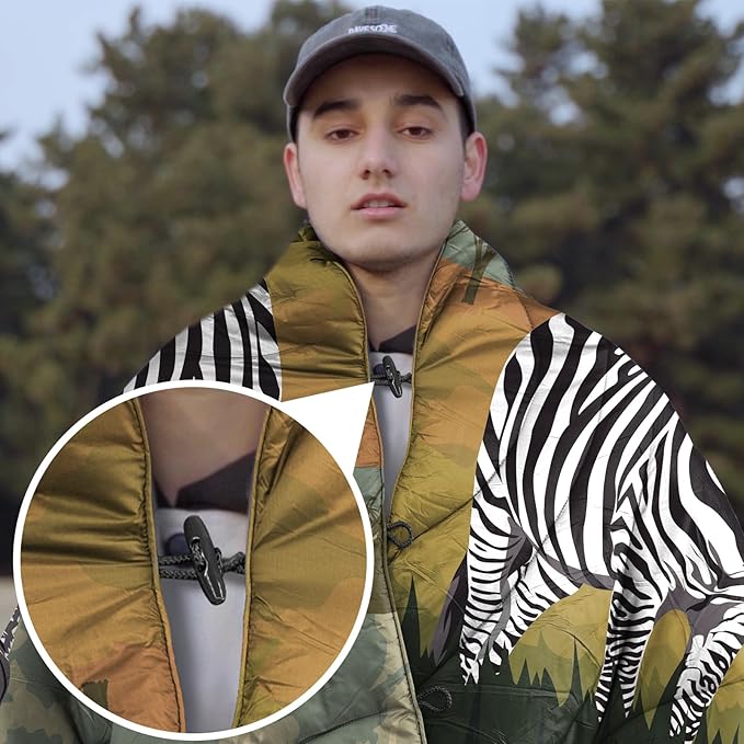 • Multipurpose Puffer Blanket and Poncho: This is a multi-purpose puffy blanket ultralight. In addition to being used as a warm camping blanket for sleeping for cold weather, the buttons on both sides combine to be used as a poncho, which is very convenient and can free your hands