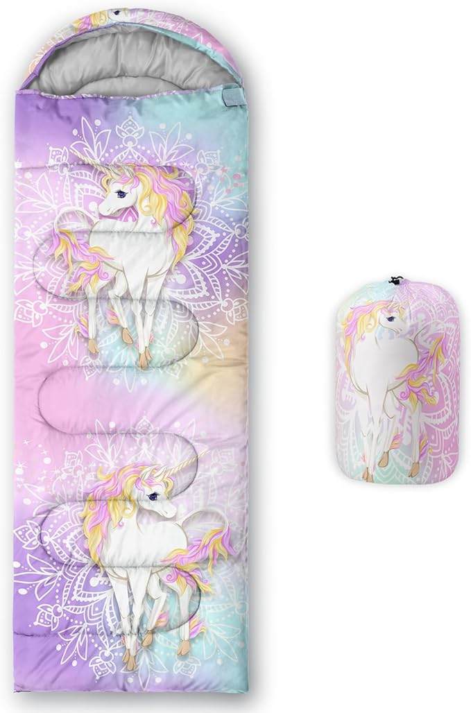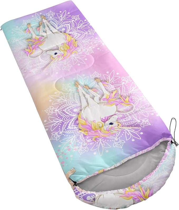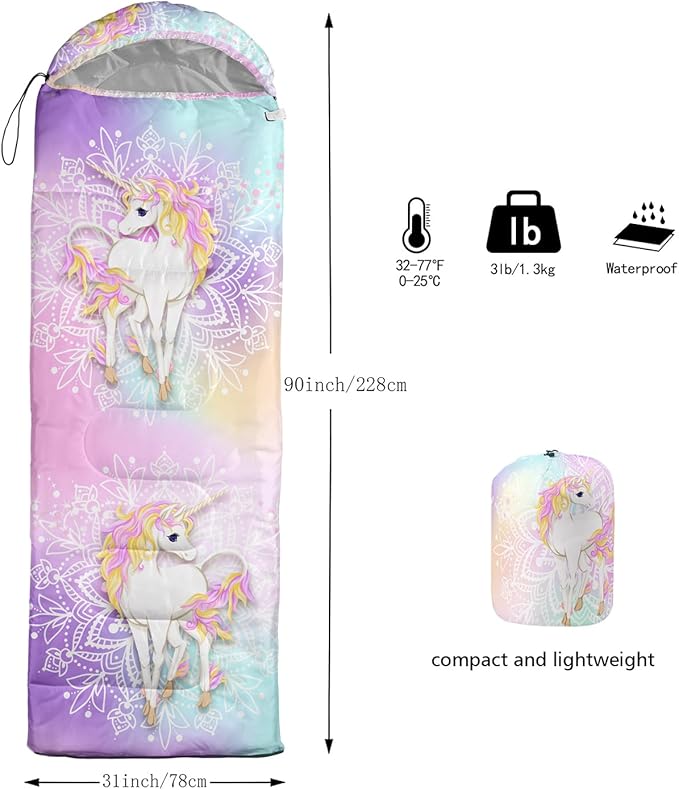 • 🌈【Fashion Design】SIZE - 31 by 90 inches (W x D). Our sleeping bag can be used in 3 seasons with a design temperature of 32℉-77℉(0℃-25℃). These bags also have a weather resistant waterproof design to keep you warm and prevent you from any dampness.