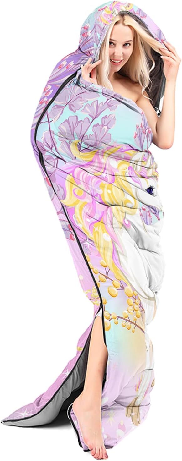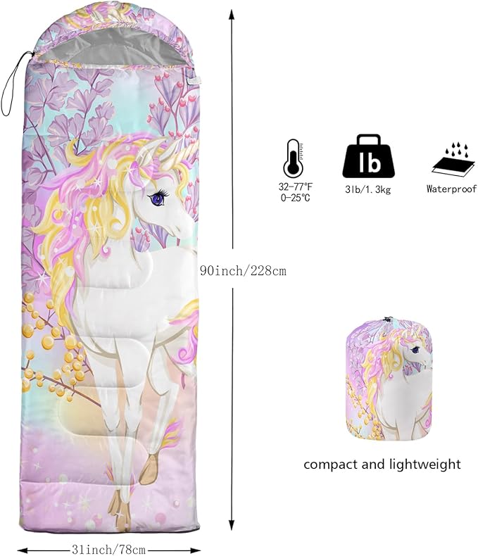 • 🌈【Fashion Design】SIZE - 31 by 90 inches (W x D). Our sleeping bag can be used in 3 seasons with a design temperature of 32℉-77℉(0℃-25℃). These bags also have a weather resistant waterproof design to keep you warm and prevent you from any dampness.