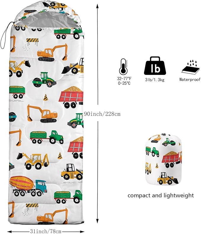 • 🌈【Fashion Design】SIZE - 31 by 90 inches (W x D). Our sleeping bag can be used in 3 seasons with a design temperature of 32℉-77℉(0℃-25℃). These bags also have a weather resistant waterproof design to keep you warm and prevent you from any dampness.