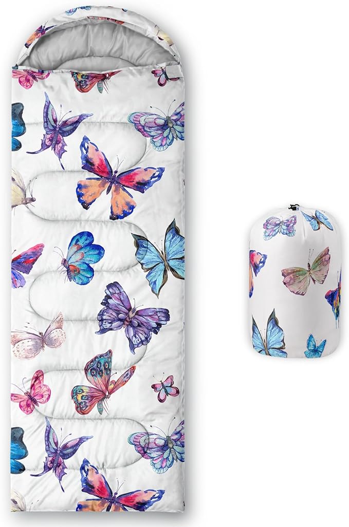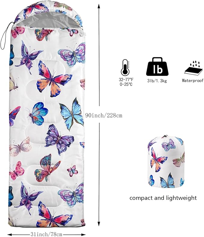 • 🌈【Fashion Design】SIZE - 31 by 90 inches (W x D). Our sleeping bag can be used in 3 seasons with a design temperature of 32℉-77℉(0℃-25℃). These bags also have a weather resistant waterproof design to keep you warm and prevent you from any dampness.