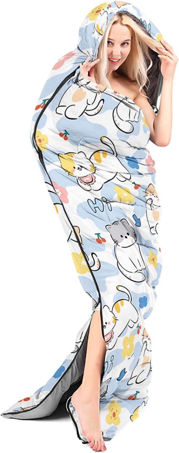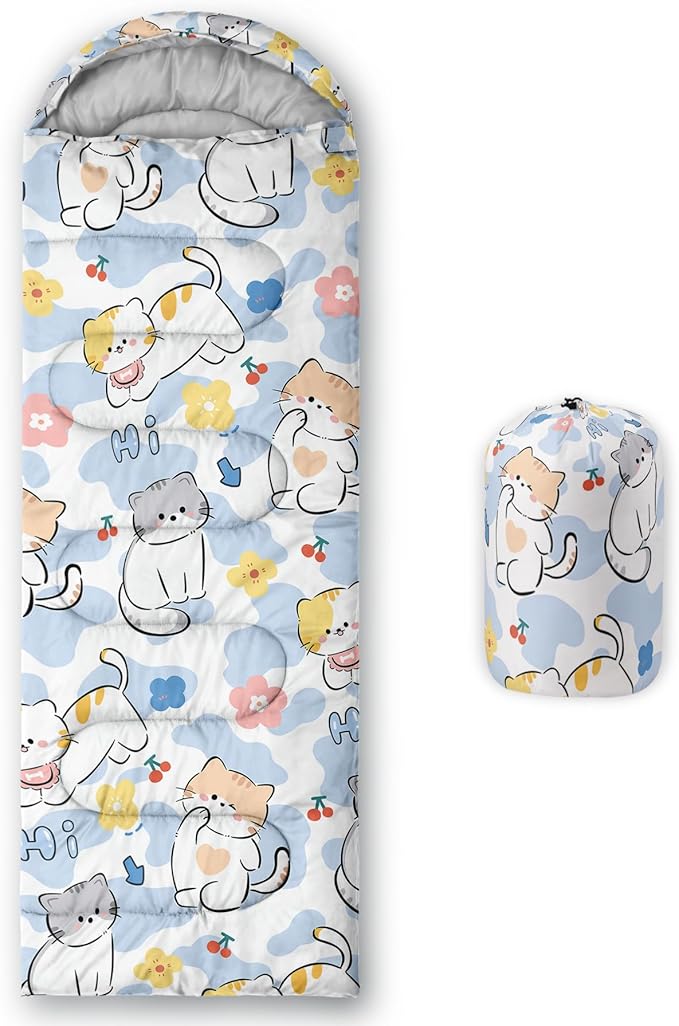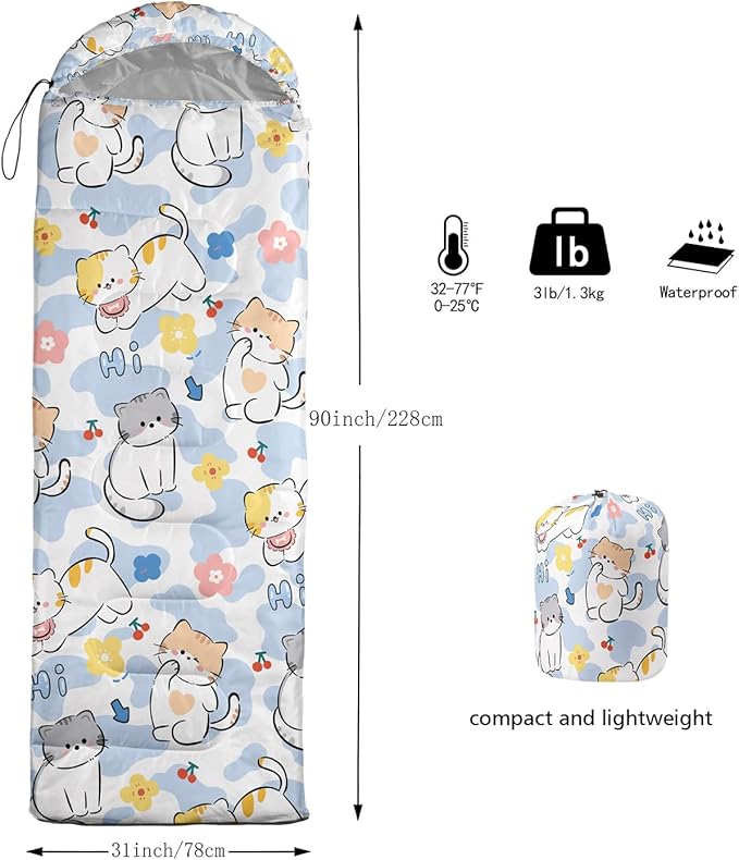• 🌈【Fashion Design】SIZE - 31 by 90 inches (W x D). Our sleeping bag can be used in 3 seasons with a design temperature of 32℉-77℉(0℃-25℃). These bags also have a weather resistant waterproof design to keep you warm and prevent you from any dampness.