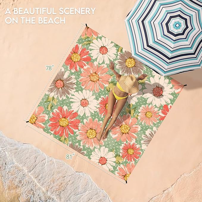 • 🏕️Beach Blanket Oversized:Good tear resistance,dry quickly.Also can be used as a rain shed,sunshade,tent,toddler crawl,emergency mat.Feel comfortable to lying down.Won't irritate your skin,better professional fabric sewing.