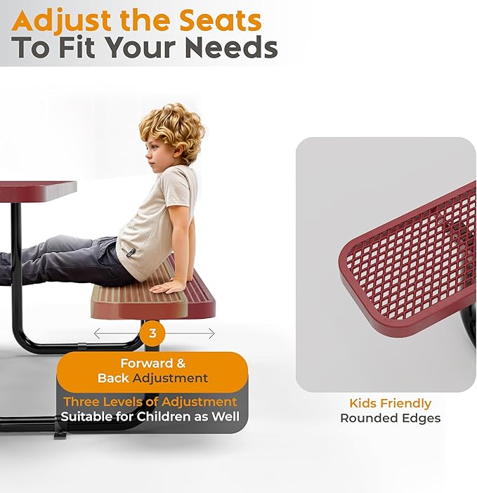 • Customizable Seating Position: Provides comfort for the whole family, ensuring everyone has the perfect fit. This table features adjustable seating position, allowing you to easily set the seats closer for children or further apart for adults.