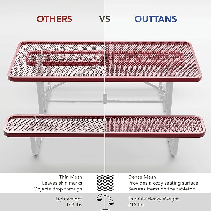 • Over-Engineered on Purpose: Frankly, we made this heavy-duty picnic table ridiculously strong. Its dense-mesh steel frame supports a combined 1,600 lbs, providing rock-solid reliability and peace of mind for any group. It delivers the reliability of a lifetime picnic table.