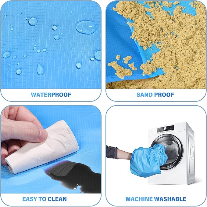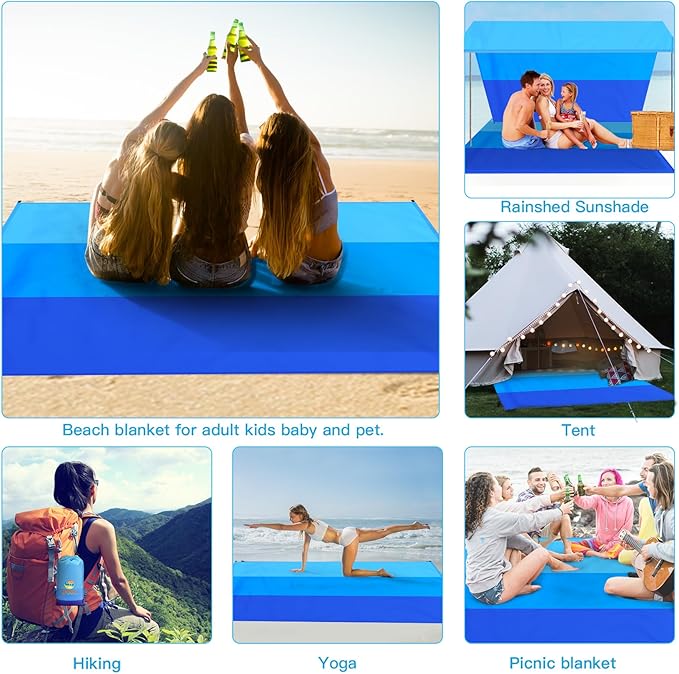 • 🏕️Beach Blanket Oversized:Good tear resistance,dry quickly.Can also be used as a rain shed,sunshade,tent,toddler crawl,emergency mat.Feel comfortable to lying down.Won't irritate your skin,better professional fabric sewing.