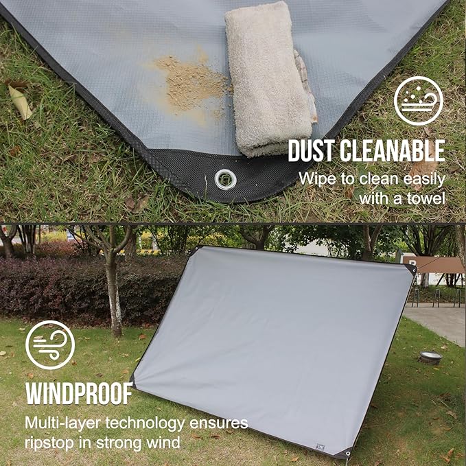 • ⛺️【Reusable and Durable】Rugged 4 Layers including PE, Polyester Mesh and Aluminum Foil. Suitable for Many Situations, including Raincoat, Camping, Hiking, Mountainning, Snowfield and Heavy Duty. Also Can be Used as Car Protection, Sunshine Shelter, Pets Shelter, SOS Signal, Solar Heater for Many Times.