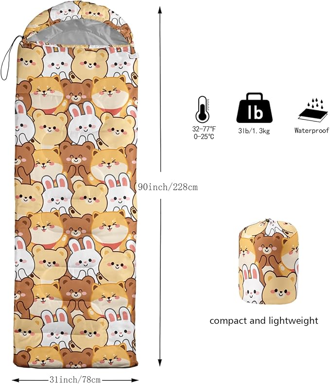• Convenient Storage:Each sleeping bag is equipped with a compression bag with straps. Package size:15*13.7*3.5inch. Our compression bag has the biggest advantage of its large capacity, which makes it easy to store and carry. It can be packed into an ultra-compact bag in a few seconds without folding or Rolling, saving you more time