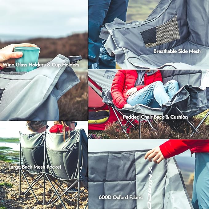 • Ready for Any Occasion – Padded Oxford fabric with breathable mesh panels keeps you cool in summer and cozy in cooler nights. From backyard BBQs to beach sunsets, this double camping chair is built for every season and every gathering.