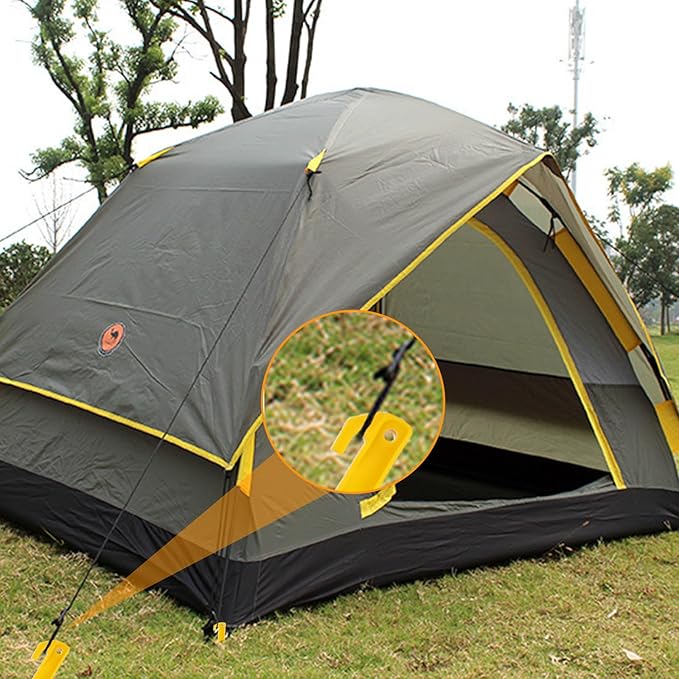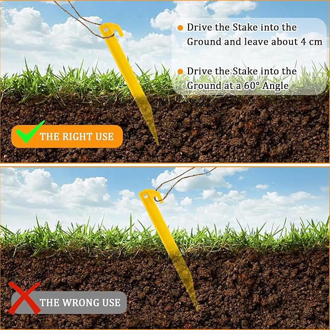 • EASY TO USE: You just need to insert the heavy duty plastic tent stakes into the ground at a suitable Angle, and then tie one end of the nail to the peg with a rope, and the other end to the corner of the tent, so that the various parts of the tent can be firmly fixed, easy to disassemble, and not easy to fall even if the wind is strong