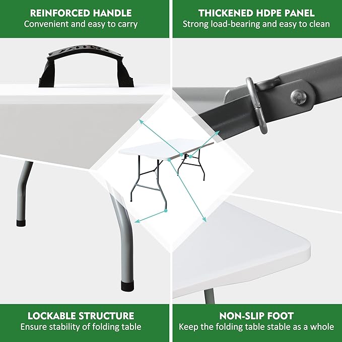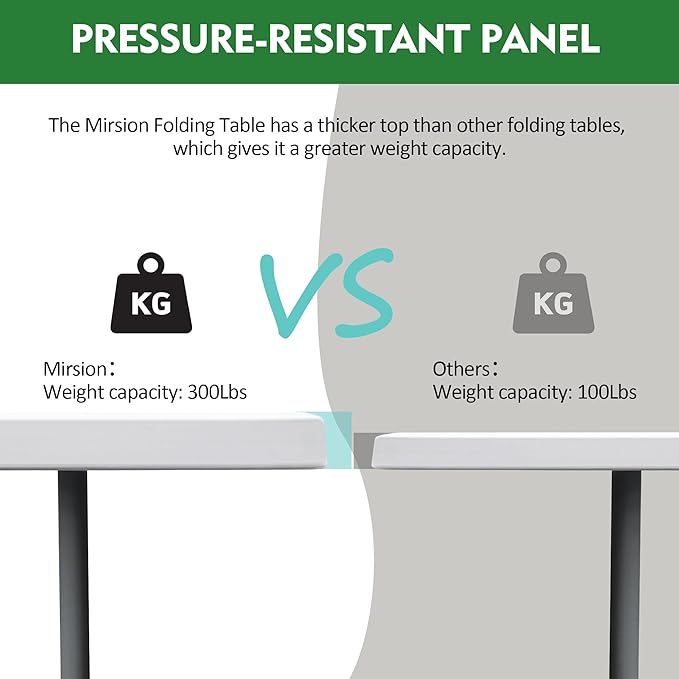 • EASY TO STORE AND CARRY: The MIRSION Folding Table is the perfect solution for outdoor parties and events. The large folding table comes with convenient side-locking handles, allowing you to easily carry and transport it anywhere.