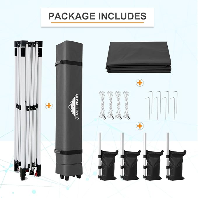 • EAGLE PEAK PROMISE: EAGLE PEAK offers 1-year limited after sale protection from the date of purchase. Unlike many other canopy sellers, EAGLE PEAK offers this for our frames, tops and bags! Please contact our professional service team with any questions