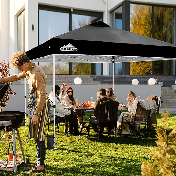 EAGLE PEAK Pop Up Canopy Tent with Wheeled Carry Bag, 8 Stakes, 4 Ropes, 4 Weight Bags, Easy Set Up Tent Canopy, 12x12 ft, 144sqft of Shade, Black