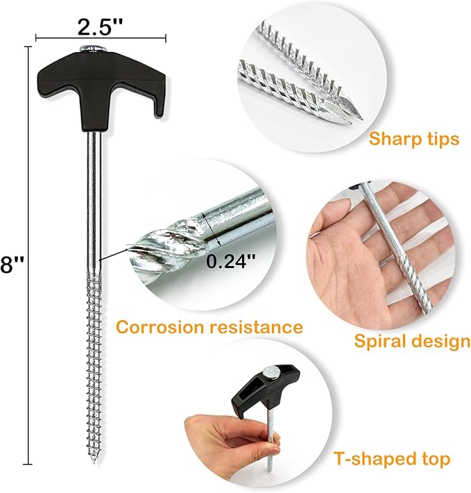 • Multi-function: Perfect yard stakes for beach, canopies, tents, tarps, groundsheets, gazebos, patio lawn and garden usages. Excellent canopy anchors in sand