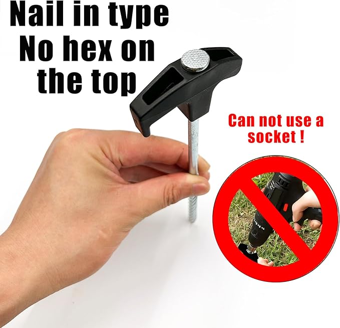 • Easy to Hammer in: Please note that these are nails not drill in screw anchors! No hex on the top! Can not use a socket on to screw these pegs in. Please kindly help to check before buying