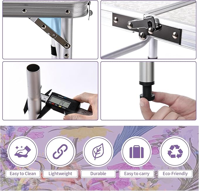 • Sturdy and Stable:Our sturdy camping table comes with a robust 5 mm MDF tabletop, thick aluminum alloy frame, U-shaped side supports, and secure locks, it guarantees durability and stability. Designed to withstand the demands of any outdoor activity