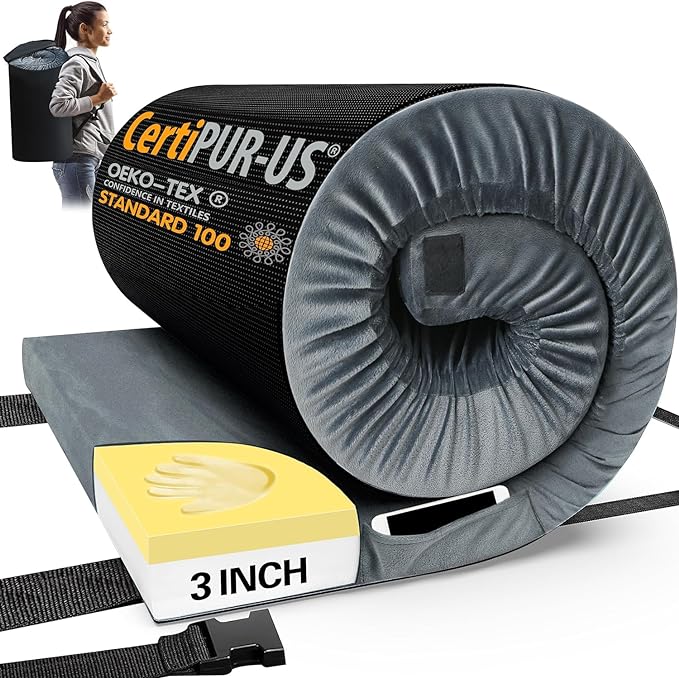 CYMULA CertiPUR-US Memory Foam Camping Mattress Pad, Portable Foam Sleeping Pad for Camping, Roll up Sleeping Mat for Adults Guest Floor Bed for Sleepover, Car, Tent SUV Cot Mattress