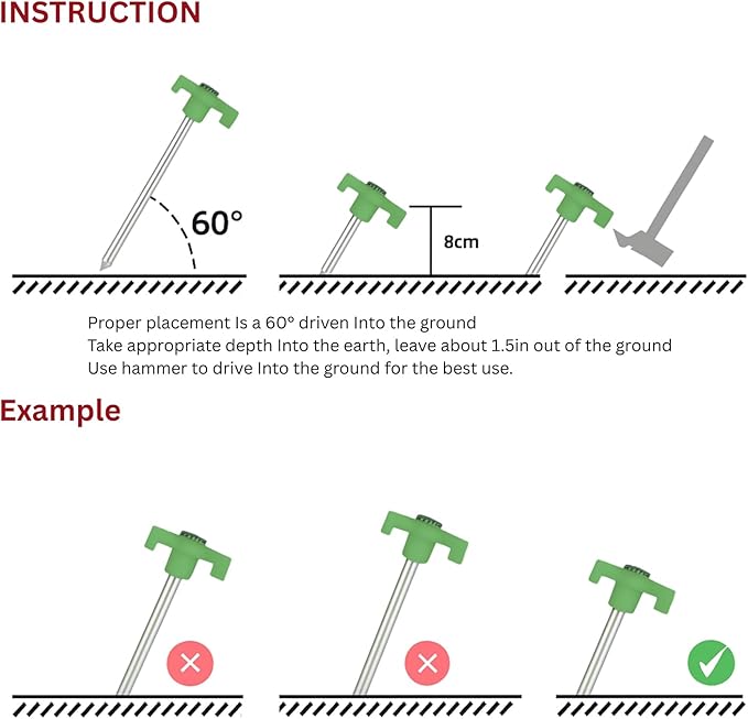 • Superior materials: Unbreakable tent/canopy stake made from premium-grade stainless steel, constructed for exceptional durability and resilience in harsh weather conditions