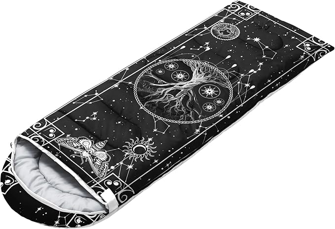 • 🌈【Fashion Design】SIZE - 31 by 90 inches (W x D). Our sleeping bag can be used in 3 seasons with a design temperature of 32℉-77℉(0℃-25℃). These bags also have a weather resistant waterproof design to keep you warm and prevent you from any dampness.