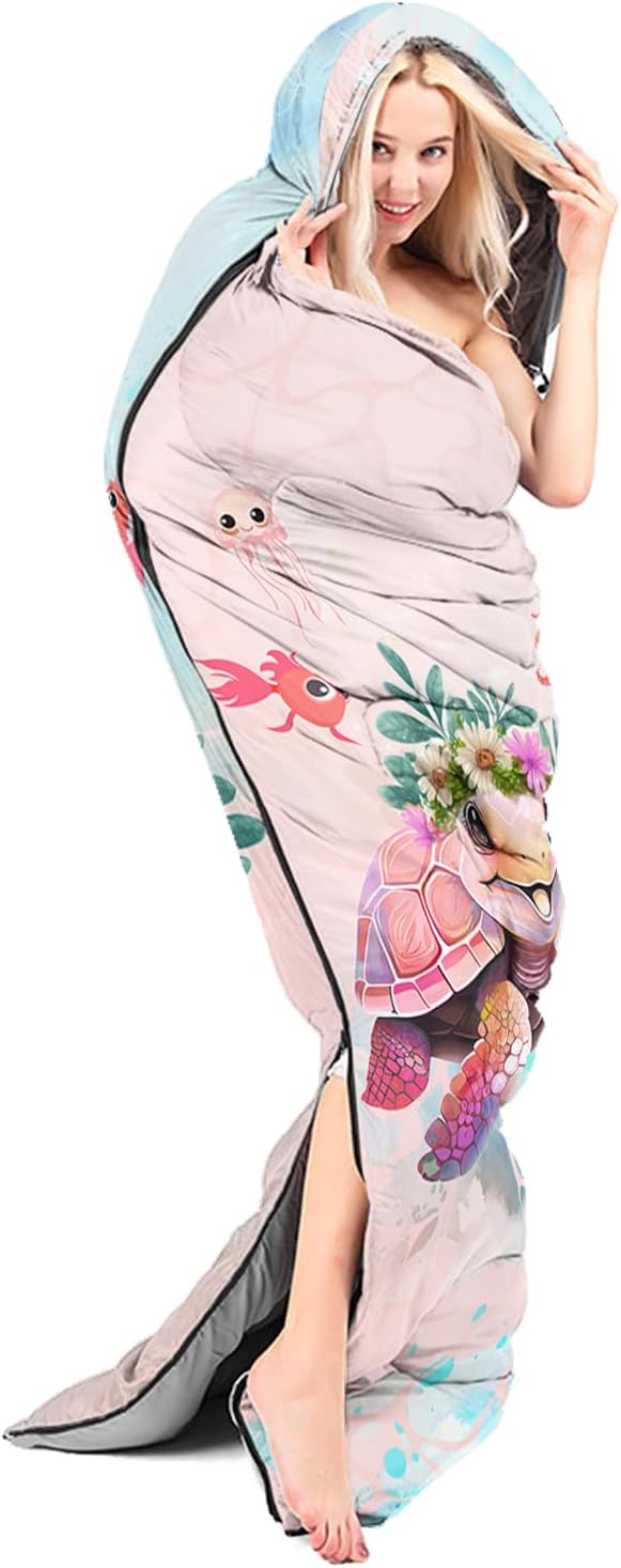 • 🌈【Fashion Design】SIZE - 31 by 90 inches (W x D). Our sleeping bag can be used in 3 seasons with a design temperature of 32℉-77℉(0℃-25℃). These bags also have a weather resistant waterproof design to keep you warm and prevent you from any dampness.