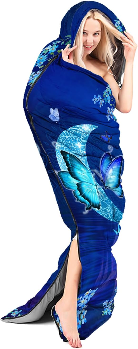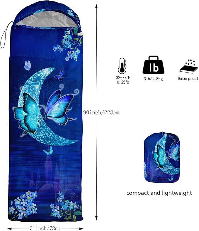 • 🌈【Fashion Design】SIZE - 31 by 90 inches (W x D). Our sleeping bag can be used in 3 seasons with a design temperature of 32℉-77℉(0℃-25℃). These bags also have a weather resistant waterproof design to keep you warm and prevent you from any dampness.