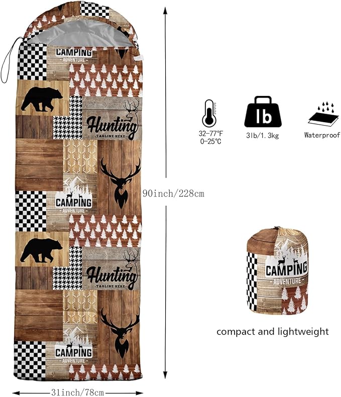 • 🌈【Fashion Design】SIZE - 31 by 90 inches (W x D). Our sleeping bag can be used in 3 seasons with a design temperature of 32℉-77℉(0℃-25℃). These bags also have a weather resistant waterproof design to keep you warm and prevent you from any dampness.