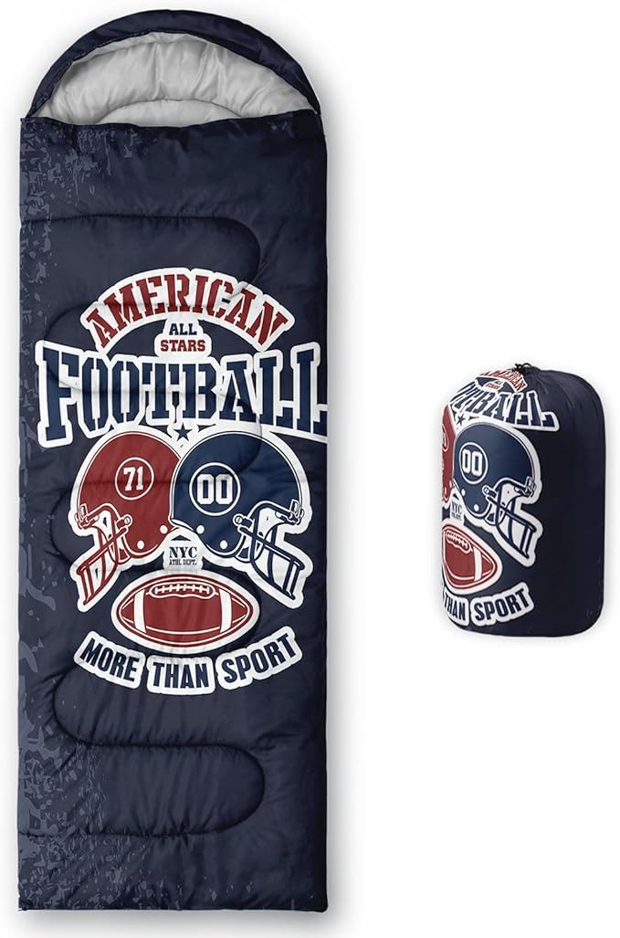 • SUITABLE:The sleeping bag can be used for 3 Seasons.SIZE:90.5"L x 31.5"W Suggenal extreme temperature: 41 ℉ -77 ℉.Applicable in a variety of scenarios,such as Travel camping pajamas party,It's very suitable for you to travel with your children.Half-circle hood with adjustable drawstring,which can keep you warm and prevent your humidity