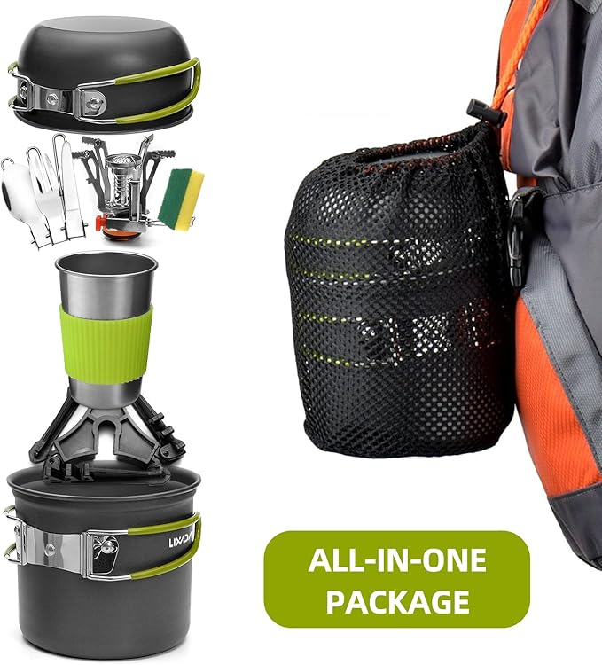 Lixada Camping Cookware Set Portable Camping Mess Kit Cooking Set Camping Cooking Set Outdoor with Stove Spoon Fork Cutter for Picnic Hiking Backpacking Travel