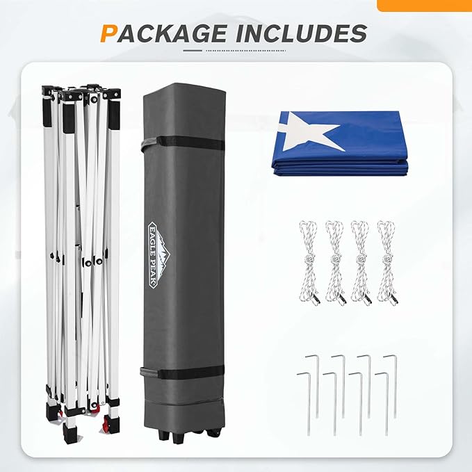 • EAGLE PEAK PROMISE: EAGLE PEAK offers 1-year limited after sale protection from the date of purchase. Unlike many other canopy sellers, EAGLE PEAK offers this for our frames, tops and bags! Please contact our professional service team with any questions