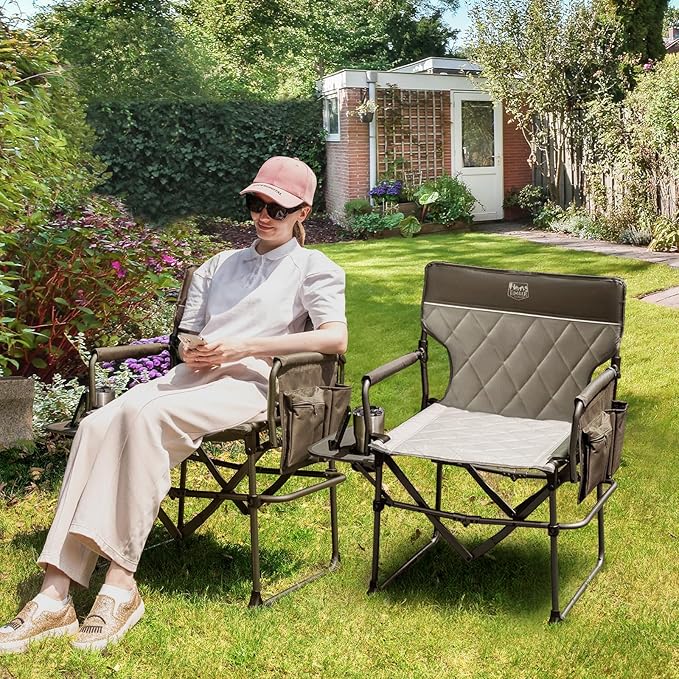 • HEAVY-DUTY COMFORT: Built with a sturdy metal frame, our directors chair supports up to 400 lbs, offering stability and durability; the 21-inch seat width provides ideal comfort, while padded hard armrests make sitting and standing easy.