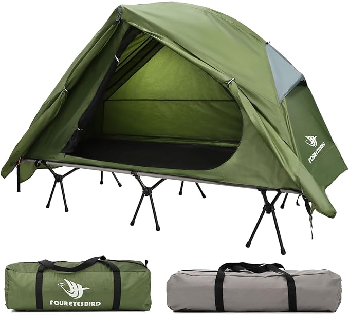 • [Camping Cot Tent]: This camping tent consists of an elevated tent and a camping bed that you can use in combination or alone. The waterproof insulation fabric at the bottom of the tent will protect you from the ground and provide a comfortable dry place.